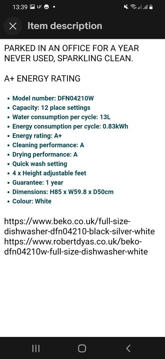 Beko Dishwasher (Full Size) in E8 London for £130.00 for sale Shpock